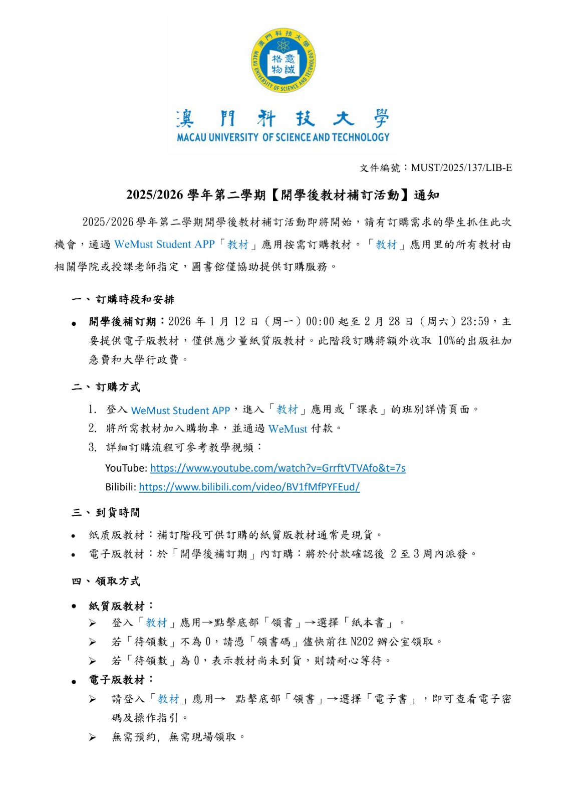 2025/2026學年第二學期【開學後教材補訂活動】通知