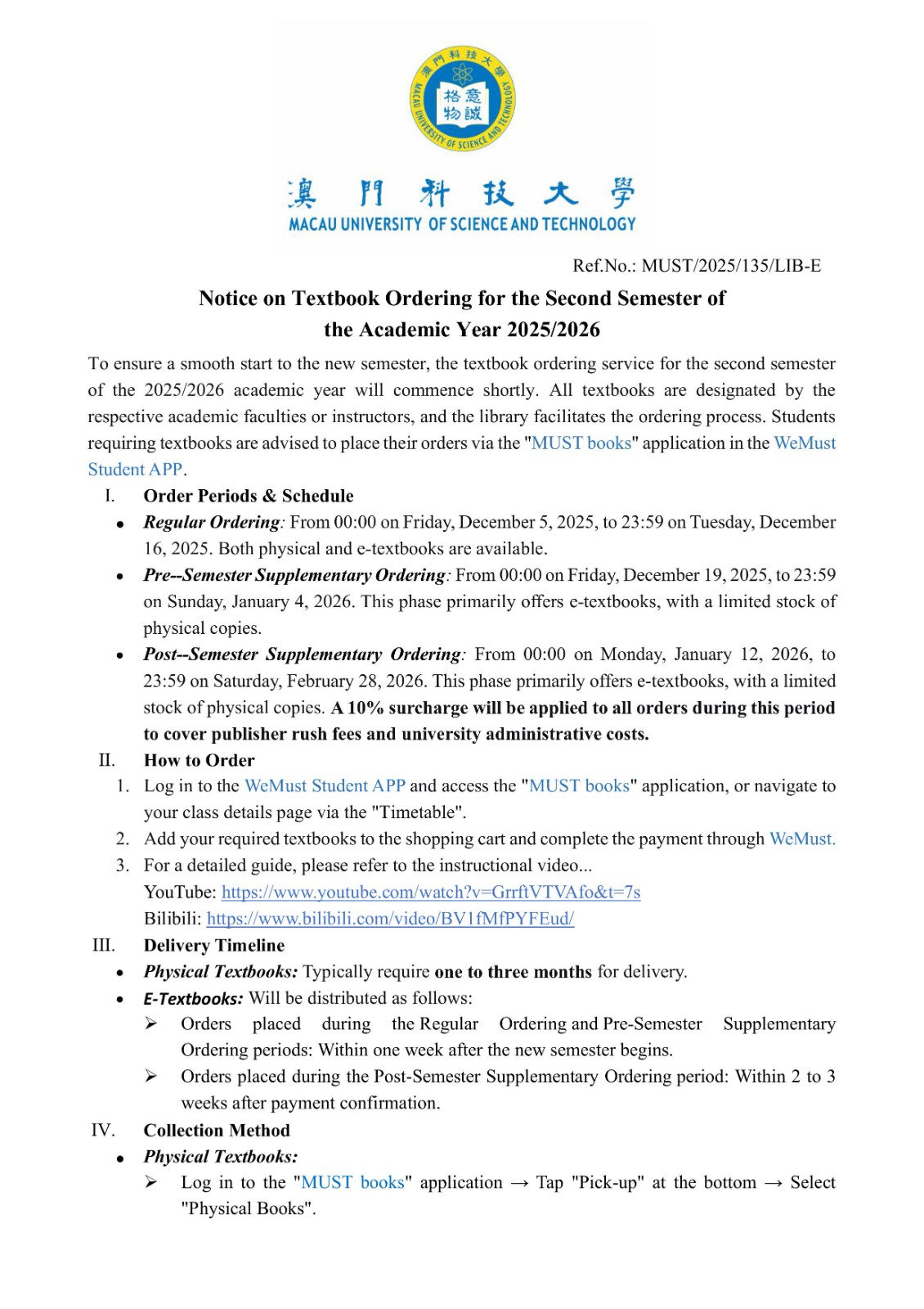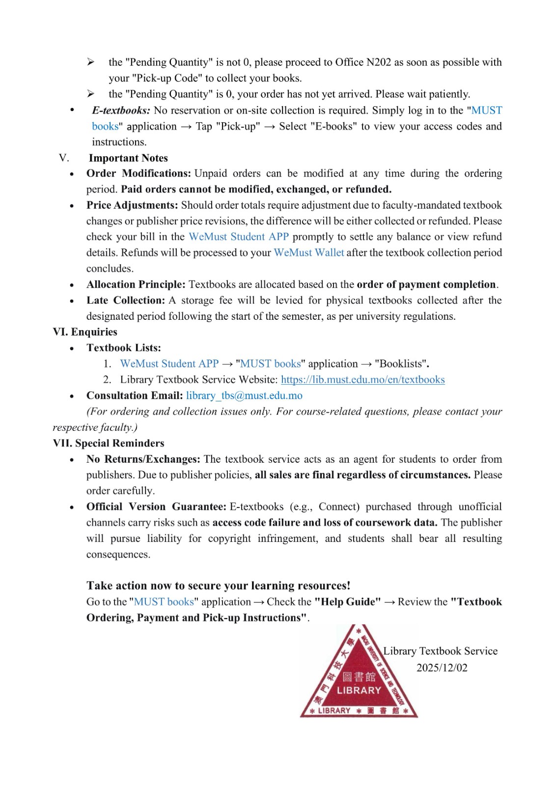 Notice on Textbook Ordering for the Second Semester of the Academic Year 2025/2026