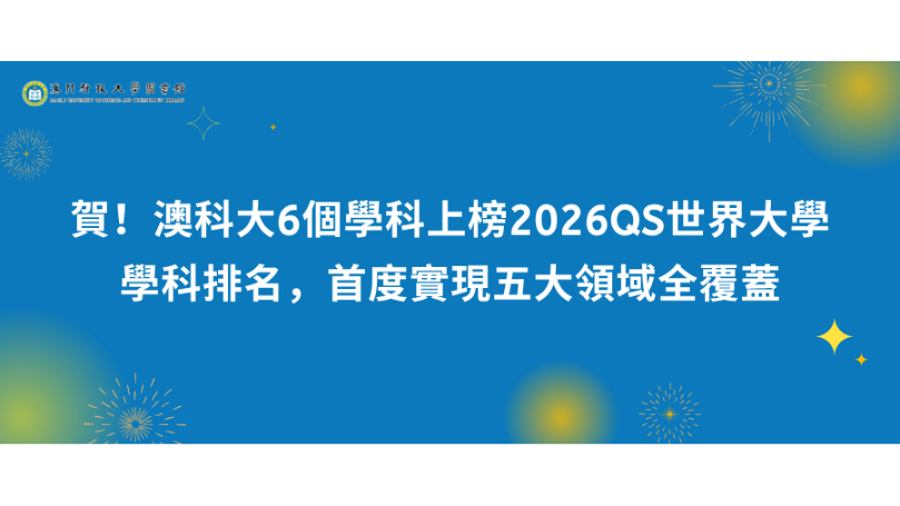 賀!澳科大6個學科上榜2026QS世界大學學科排名,首度實現五大領域全覆蓋2026年3月25日,國際高等教育研究機構QS Quacquarelli Symonds公佈了「2026 QS世界大學學科排名」(QS World University Rankings by Subject 2026)。澳門科技大學表現卓越,新增4個學科、共有6個學科成功上榜,涵蓋社會科學與管理、藝術與人文、工程與技術、自然科學以及生命科學與醫學五個領域,歷史性地首次實現QS五大學科領域的全覆蓋。其中,傳統優勢學科酒店管理實現突破,首次躋身全球51-100名,多個新興學科亦展現出強勁的發展勢頭,標誌著大學在學科建設與國際影響力上邁出了跨越性的一步。澳科大在「QS2026世界大學學科排名」中的上榜學科 澳科大在QS2026世界大學學科排名中取得的佳績,得益於大學長期以來對學術研究和科研創新的高度重視。QS的評估指標顯示,澳科大在篇均論文引用及H-Index等關鍵科研指標上表現尤為顯著。在社會科學與管理領域,酒店管理學科(51-100)憑藉卓越的學術聲譽及穩健的科研表現,成功躋身全球百強,澳科大酒店與旅遊管理學院、博雅學院、商學院對此次提升各有不同的貢獻度。在藝術與人文領域,語言學科(301-350)在學術聲譽和僱主聲譽方面獲得高度認可,樹立了新的里程碑。在工程與技術領域,計算機科學與信息系統(401-450)以及電子電氣工程學科(401-450)的科研指標得分亮眼。在自然科學與生命科學領域,物理學與天文學(551-600)、生物科學(651-700)的成功上榜,彰顯了大學在穩固學科基礎方面的關鍵支撐作用。此外,澳科大在學科建設上呈現出重點院所帶動、交叉融合提質的發展格局,各院所優勢互補,共同推動了大學整體學術水平的提升。 此次QS學科排名取得的歷史性突破,是全校師生不懈努力與追求卓越的成果,印證了澳科大在多個學科領域的國際競爭力,以及推動學科發展、提升國際聲譽的成效。未來,大學將繼續秉持教研並重的理念,進一步優化學科佈局,致力於培養具備國際視野的高素質人才,為粵港澳大灣區及國家的科技創新與社會發展作出更大貢獻。 QS世界大學學科排名是全球最具權威性和影響力的大學學科排行榜之一。2026年的排名涵蓋了五大廣泛學科領域的55個細分學科,主要基於學術聲譽、僱主聲譽、篇均論文引用、H-Index及國際研究網絡五項核心指標進行綜合評估。·新聞2026.04.02 -